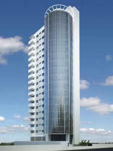 Descrição: Edifício residencial com 2 subsolos, Térreo, Pilotis e 15 Pavimentos com diversas tipologias de apartamentos, 1quarto, 2 quartos e duplex.